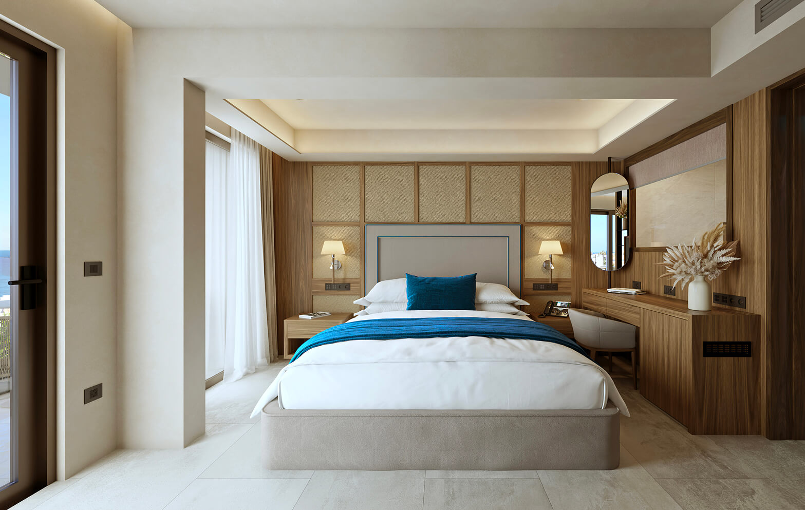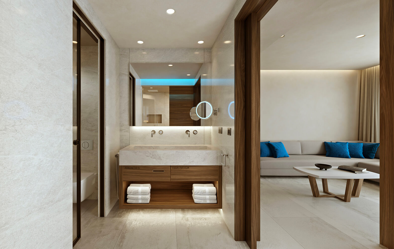 It features an Italian-designed bath or shower, air conditioning and a 49” satellite TV for perfect in-room entertainment.