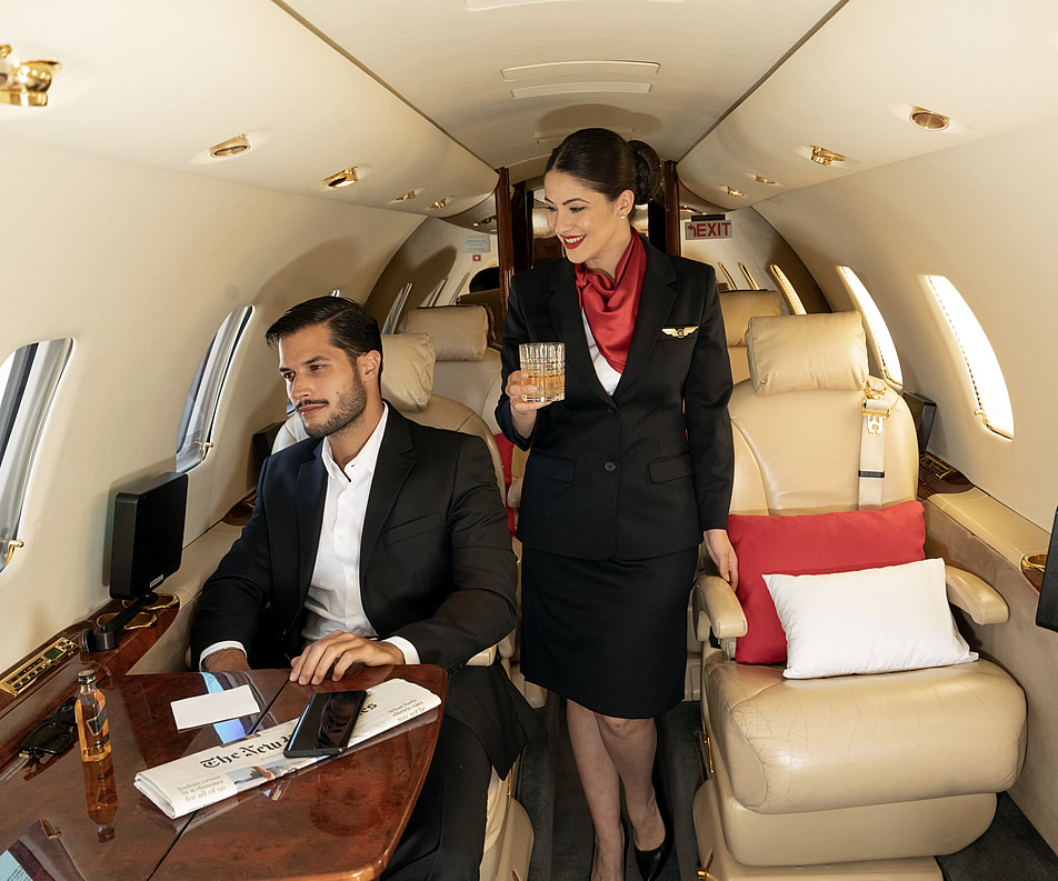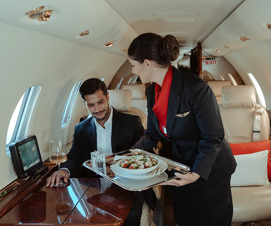 Travel in ul-mate comfort and style with PanHellenic Airlines, the newest addi-on to the Karatzis Group of Companies, specializing in luxury private jet services. From takeo+ to landing, immerse yourself in an atmosphere of stylish exclusivity with bespoke VIP ameni-es including: