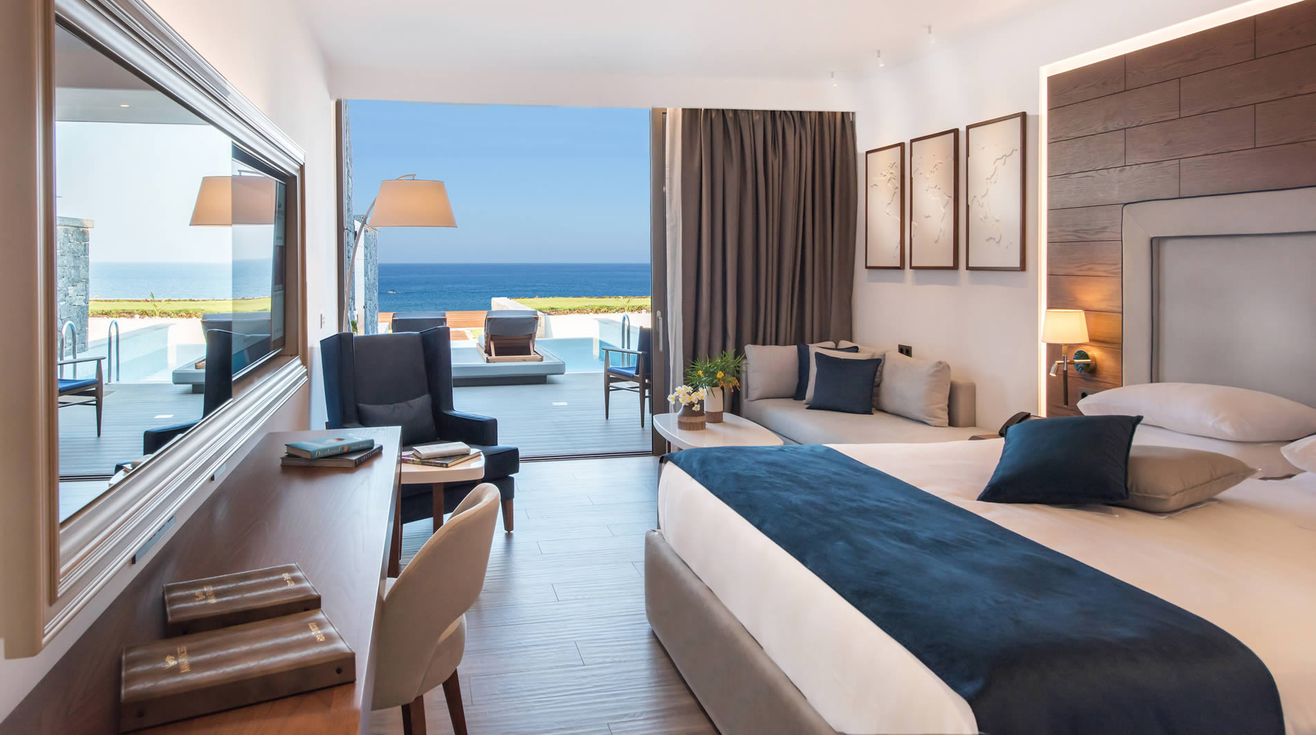 На вилле Blue Princess Villa вы ощутите абсолютное превосходство. Эта вилла идеально расположена и предлагает захватывающий вид на Критское море на двух больших уровнях, охватывающих просторные внутренние и внешние жилые зоны. До 6 гостей смогут разместиться в роскошных спальнях с кроватями king-size, а также на двух высококачественных диванах-кроватях.