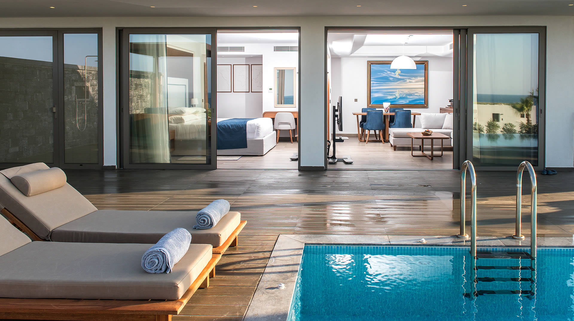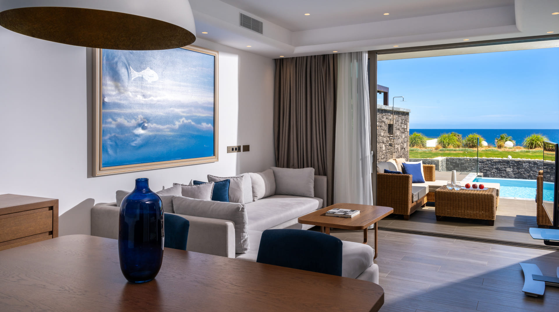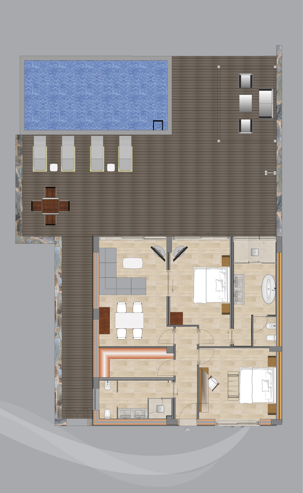 Эта впечатляюще просторная резиденция предлагает нашим гостям роскошные условия: просторную гостиную площадью 110 кв. м и обширное открытое пространство площадью до 142 кв. м. Здесь могут собраться друзья и семья, чтобы провести драгоценные минуты наслаждения, любуясь восхитительными видами на море. В двух шикарных спальнях с кроватью king-size, включая главную спальню, с комфортом разместятся до 4 гостей.